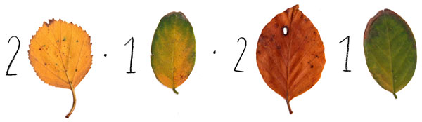 | When I saw this leaf on the pavement, my mind needed some seconds till it fully comprehended how perfectly coloured the leaf was. So I had to go back and pick it up, couldn't leave it there. I did some patterns instead and it works perfectly. If I would have some »Mr. Leaf of the Year« Competition going one, this leaf would probably win. |