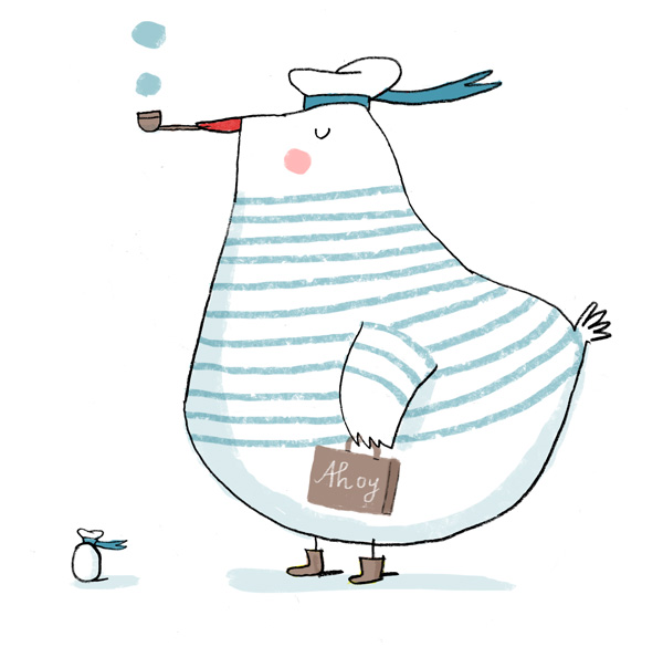 *Juchhu* I so wanted to submit something to Illustration Friday for years and now *tatataaaatatatatatataaaaa-little trumpet fanfare* I made it! This week's topic is chicken. Don't ask why it turned out as maritime chicken, I just don't know.