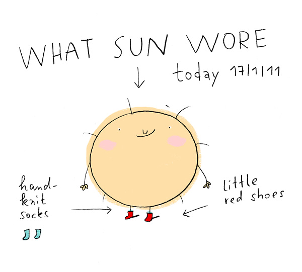 In case you wonder: No, it's not sunday, I'm sorry. But Sun discovered the flickr group »What I wore today« and HAD to participate. I tried to convince Sun that wearing not as much could be proven rather boring for this group, but that was quite futile. Well, stubborn sun got its way…again *sigh*. Oh, and in case you wonder again: After yesterday's exertion Supersun's cape got dirty (a weary cloud vomitted upon it) and had to be cleaned. Now it's drying. That's why Sun is without cape and its civilian self again.